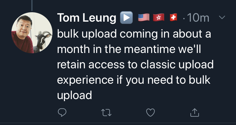 Firstly, just around the corner is the ability to bulk upload, a feature that was in Studio Classic, but not seen in the new Studio thus far.